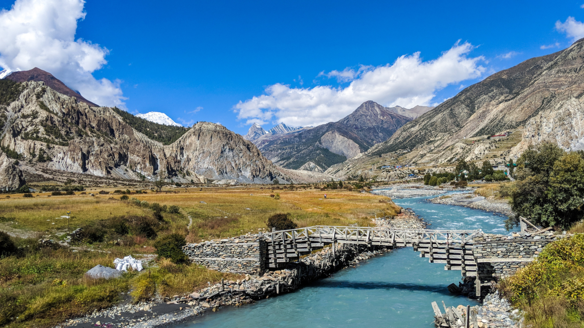The ride begins from the lush lower valleys and gradually ascends through picturesque villages, terraced farmlands, dense forests, and roaring river gorges. As you move higher, the scenery transforms into alpine terrain and eventually into the dry, windswept landscapes of Mustang, often compared to the Tibetan plateau.