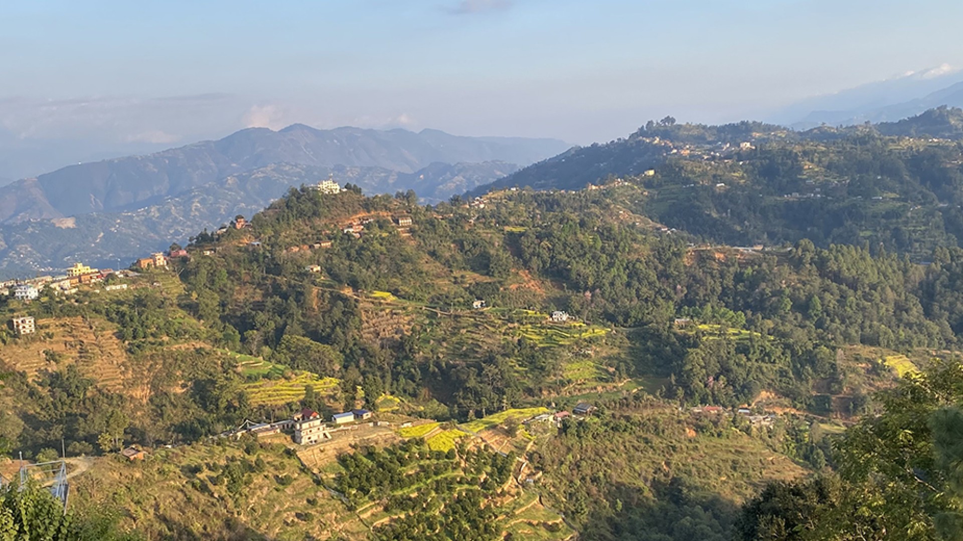 Scenic drive through lush hills, terraced fields, and traditional villages from Kathmandu